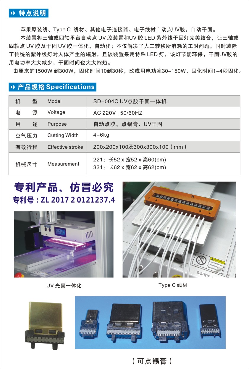 SD-004C UV點(diǎn)膠干固一體機(jī)